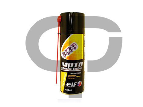 -6The use of ELF MOTO CHAIN LUBE extends the lifetime of the chain.-The grease gives maximum protection against chain corrosion.-ELF MOTO CHAIN LUBE is insoluble in water, even saline.-The use of a special solvent means that ELF MOTO CHAIN LUBE :• Is sufficiently fluid as it leaves the spray to be well distributed on the chain.• Sticks very quickly, thanks to the rapid evaporation of the solvent, consistency and adherence adapted to the requirements of a motorcycle chain.-ELF MOTO CHAIN LUBE shows very good shear resistance for maximum chain protection.-The solvent used in ELF MOTO CHAIN LUBE is non-toxic and the CO2 propellant does not affect the ozone layer.-A thin film of ELF MOTO CHAIN LUBE is sufficient.